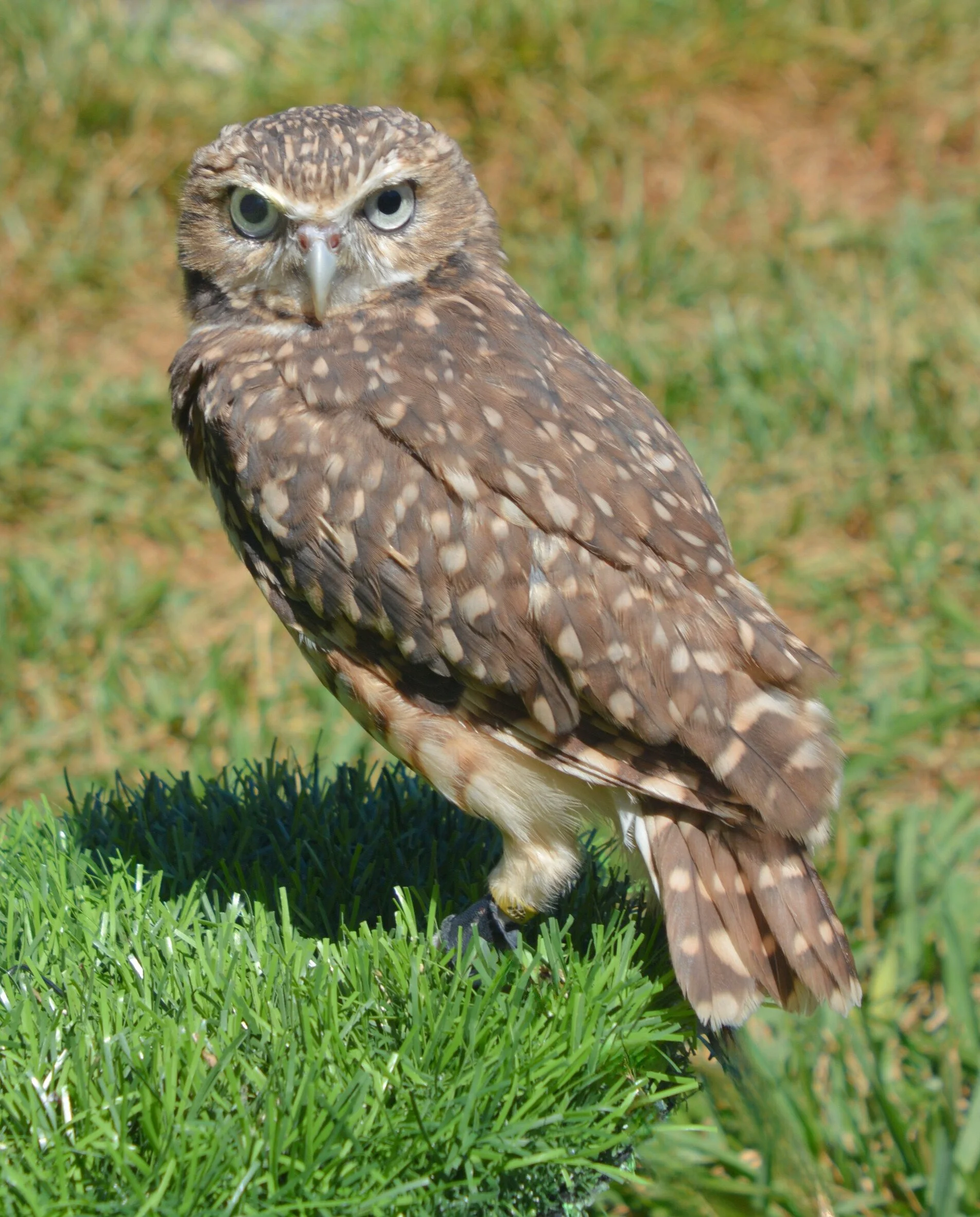 Meet our newest and youngest addition to the Wings of Discovery flock! He is a burrowing owl that was hatched on May 7, 2025, and hand-raised. We acquired him after his previous owner felt she could no longer provide the best home for him and wanted him to be able to help educate people. While we try not to reuse names of previous birds we have had and lost (as each one is a unique individual and can’t be “replaced”), this little guy came with the name Felix. So, while I do appreciate that the name means “lucky” and it does fit for this little one, as it did for our previous Felix, my nephew gave this guy the addition of “2.0” and I love it! He’s a tiny owl with a whole lotta attitude! Burrowing owls are one of the few daytime/diurnal owls. They are also very unique in the fact that they don’t sound like typical owls do. Since they live in burrows that were made by other animals and abandoned, they instinctively know to mimic the sounds of the animals that might come back to those such as barking like a prairie dog and hissing like a rattlesnake. People often wonder how they can survive living on/under ground with coyotes, and that is exactly how. Even coyotes don’t want to mess with rattlesnakes, so if they hear that sound, they go the opposite direction. I truly believe that the phrase “wise old owl” was actually referring to these little owls! He is going to be a great addition to our collection, and I can’t wait for everyone to meet him!